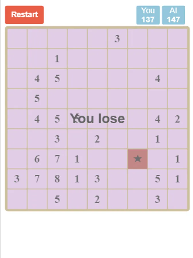 Game rule 4) Play until a play can not move OR all numbers disappear