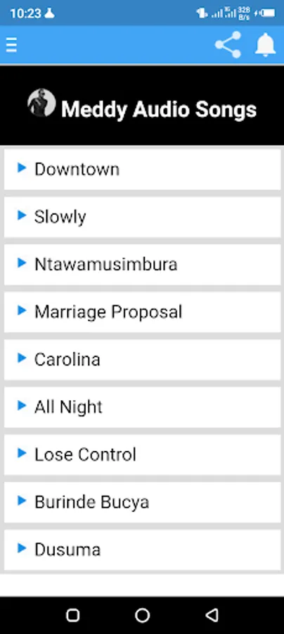 Our app is about songs of meddy a Rwandian currently famous singer Meddy, therefore we invite you to have our app so as to be entertained by Meddy.