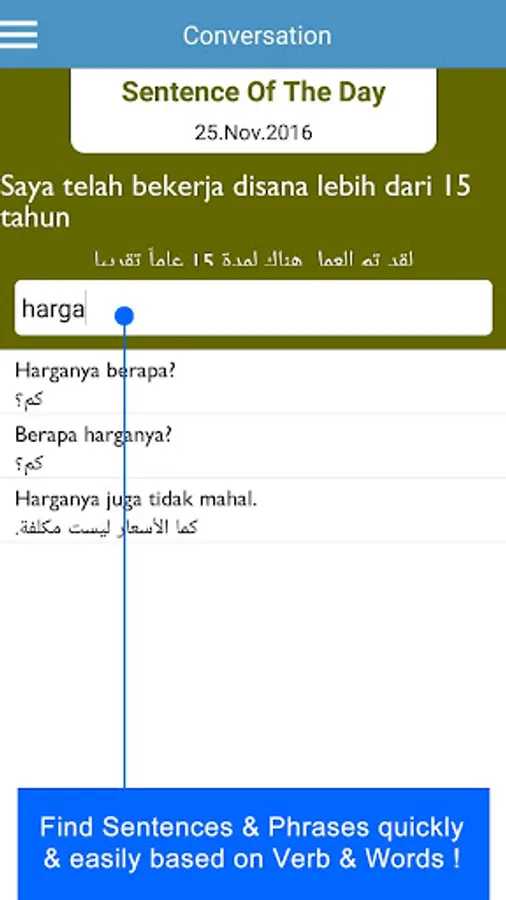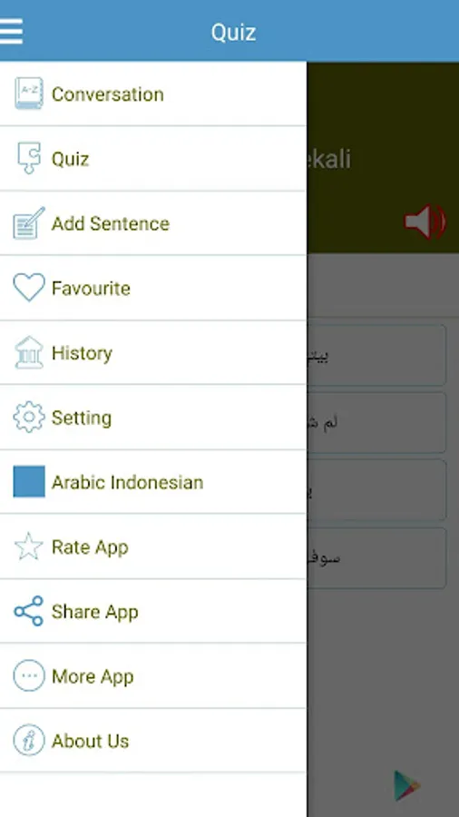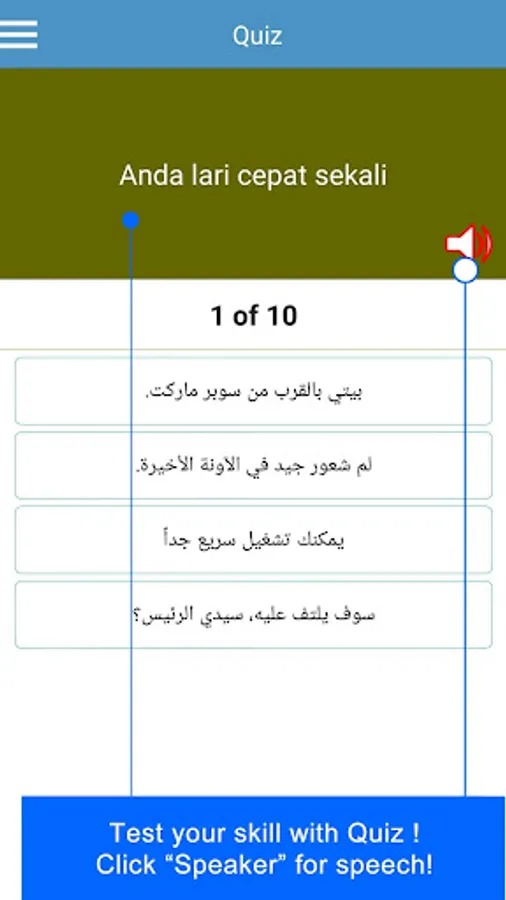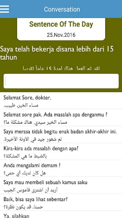 Learn to master Indonesian to Arabic with this educative application. It contains some daily conversation examples for different situation & you can add more sentences to enrich your learning journey as application is featured with Text to speech, Recording & Play back, Quiz and other features.