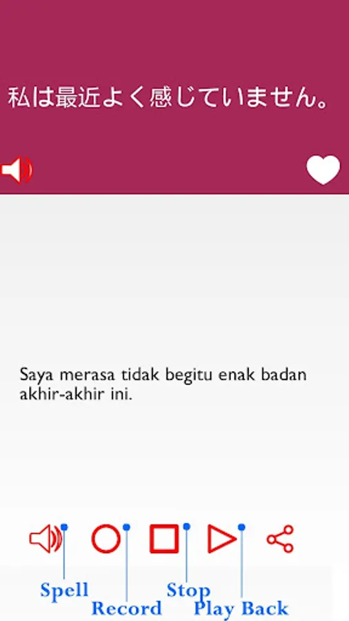 It contains some daily conversation examples for different situation & you can add more sentences to enrich your learning journey as application is featured with Text to speech, Recording & Play back, Quiz and other features.