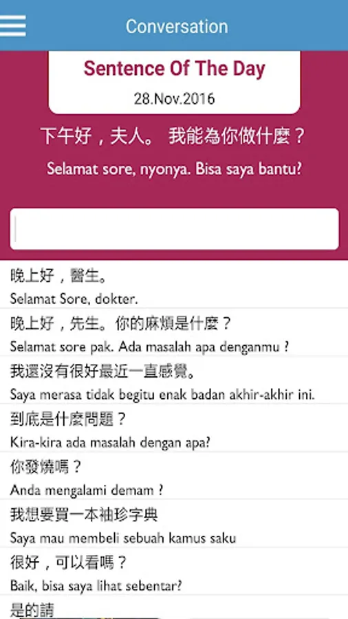 It contains some daily conversation examples for different situation & you can add more sentences to enrich your learning journey as application is featured with Text to speech, Recording & Play back, Quiz and other features.