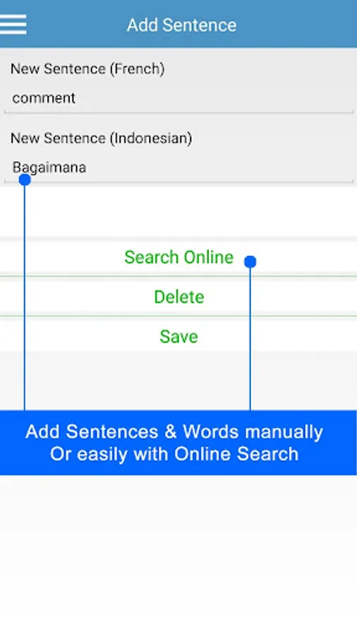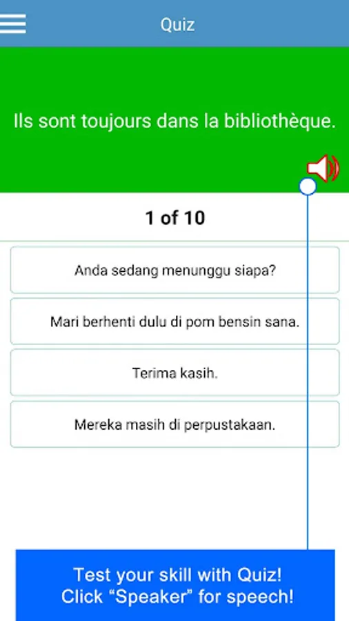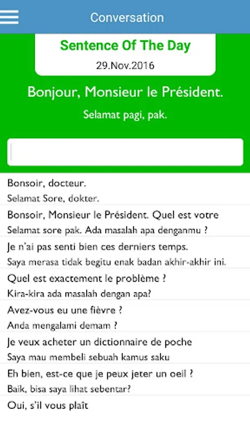 It contains some daily conversation examples for different situation & you can add more sentences to enrich your learning journey as application is featured with Text to speech, Recording & Play back, Quiz and other features.