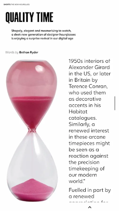 Writers for the title include Erin Baker, Andrew Frankel and Simon de Burton on cars and motorsport, Jonathan Glancey and Stephen Bayley on design, Patrick Bishop and Guy Walters on history, Tina Gaudoin, Laura Craik, Hannah Betts and Josh Sims on style and Simon Barnes and Patrick Barkham on the natural world.