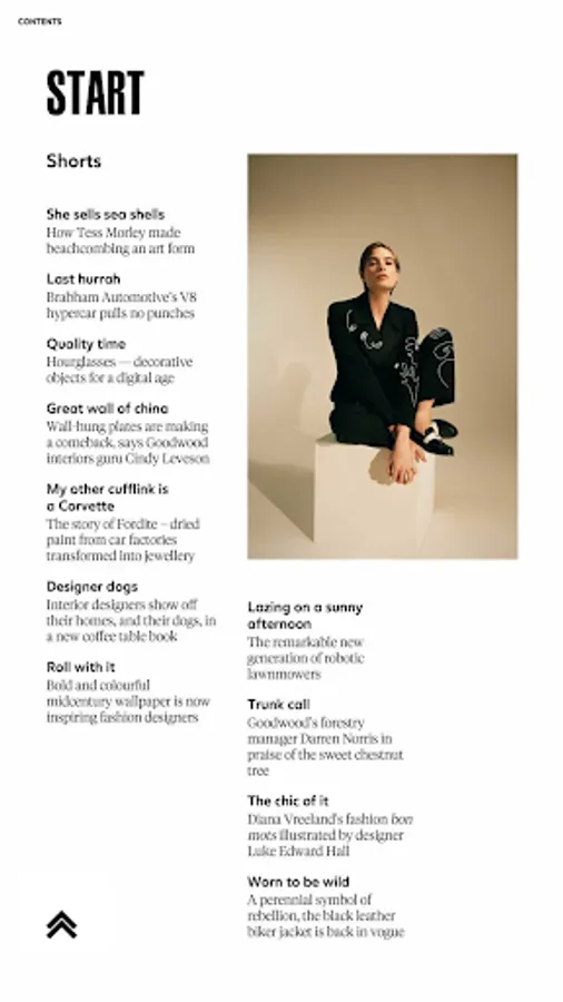 The editorial focus encompasses cars and motorsport, luxury, fashion, vintage style, country pursuits, horseracing, golf, art, architecture and design, food and drink, watches and high jewellery.