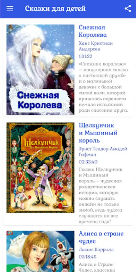 The collection "Fairy Tales for Children" contains audio stories based on the works of Russian and foreign writers.