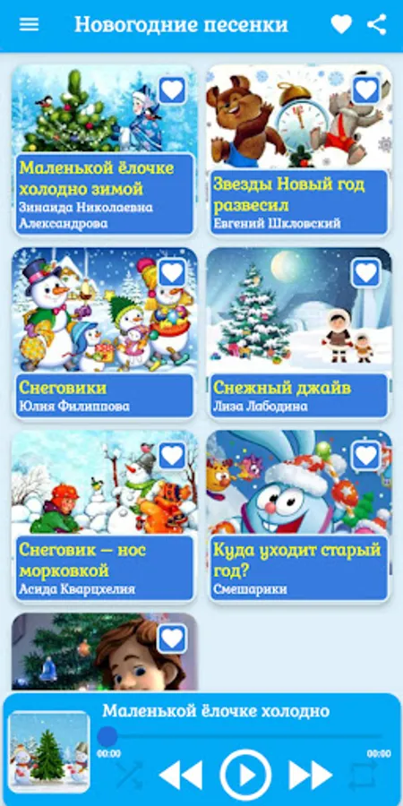 The music collection "New Year's Songs" contains good and beloved pieces about the New Year miracles and the Christmas tree, Grandfather Frost and Snegurochka, winter and, of course, Christmas.