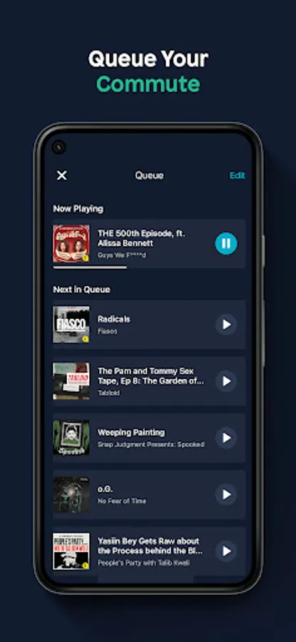 • Bookmark individual episodes, with drag and drop sorting to listen how you want.