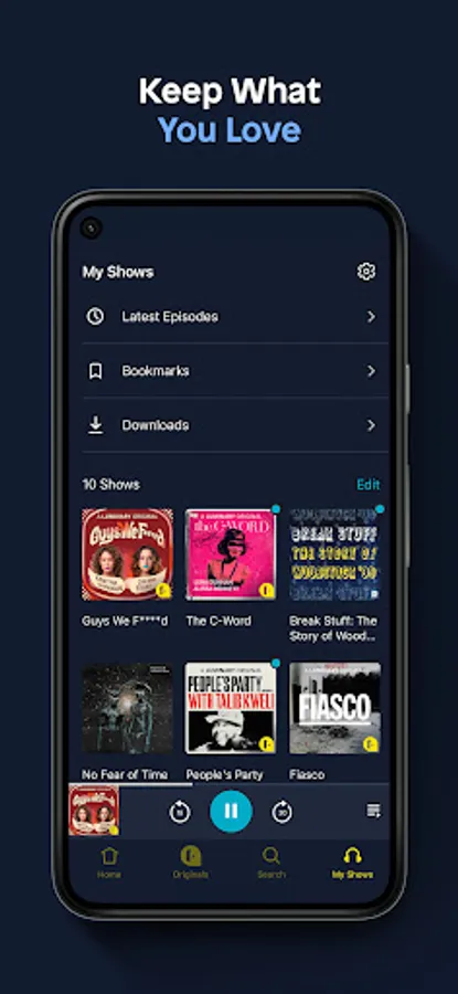 • Collect your favorite shows, get alerts for new episodes, and listen right from your home screen.