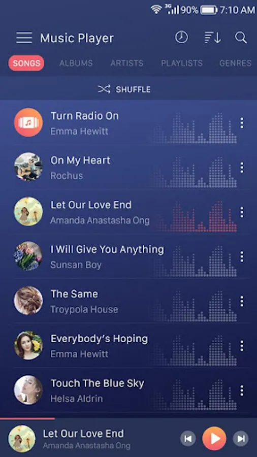 Listening to songs on "Music player" will give better mood and better life.