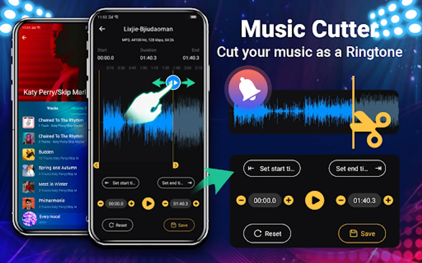 Powerful ringtone cutter. Make ringtones from your favorite songs, convenient to make ringtones.
