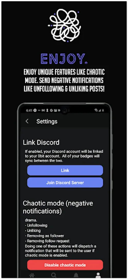 Chaotic mode is a setting that dispatches notifications to the receiving end of unfollows, unlikes, and unrequest.
