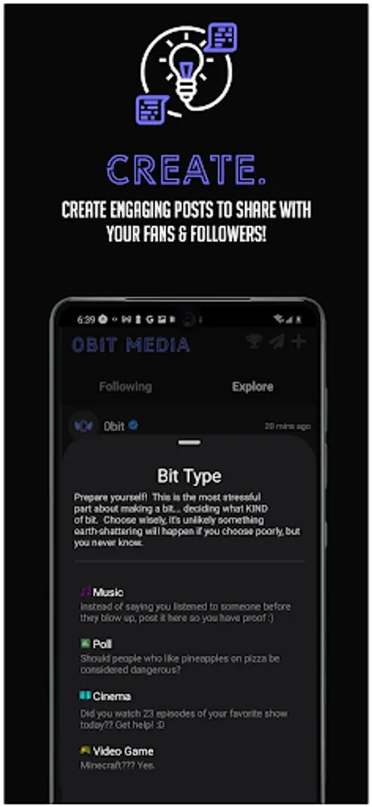 The different post types that are operational as of now are text, photo, video, music, and poll posts. There are plans to add video game and vinema though.