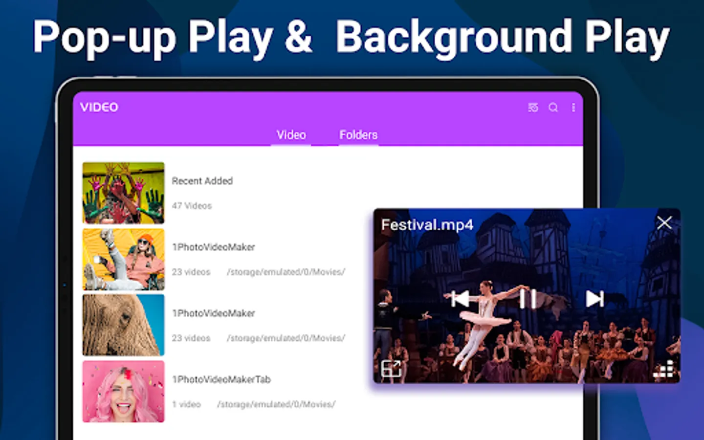 - Background Video Player: play the video in the background like music playback. You can watch a video in the way of multi-tasking.