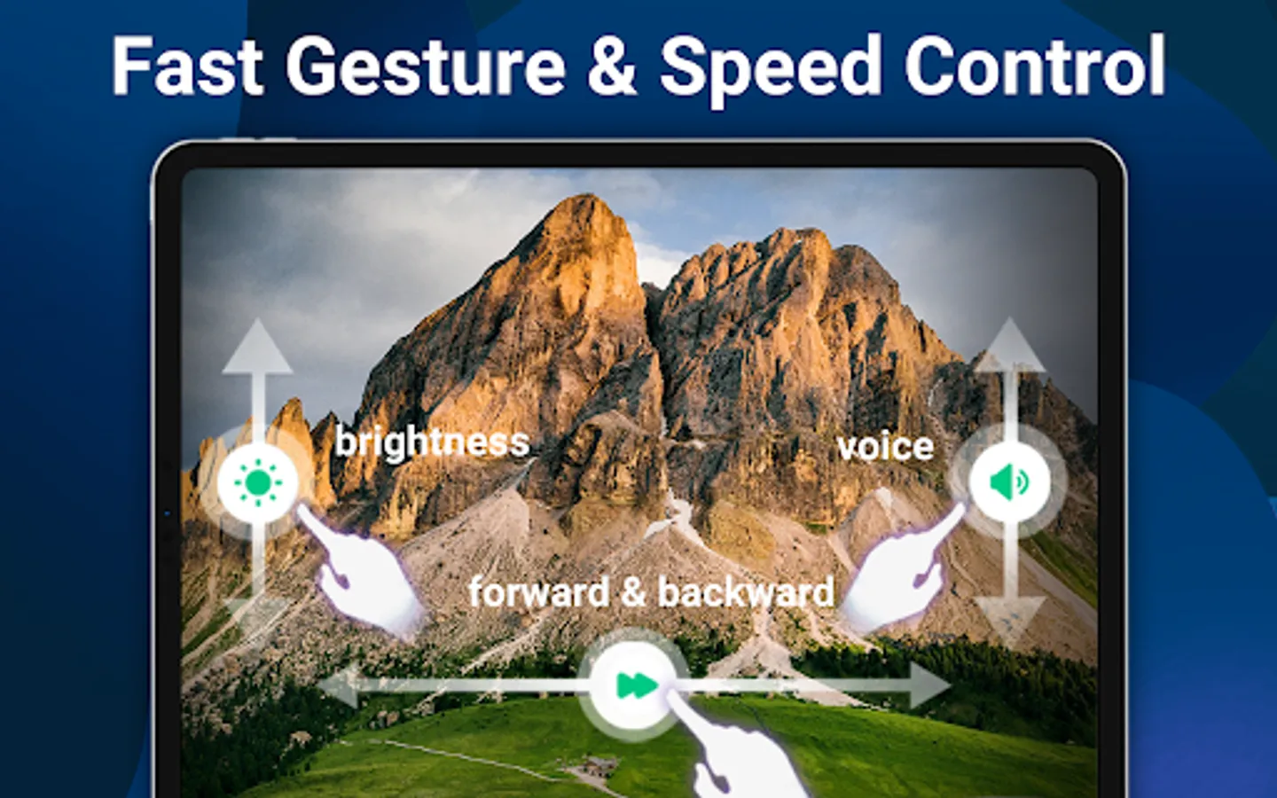 - Easy Gesture Control: Zoom and pan. adjust playback speed, brightness, volume and seeking.