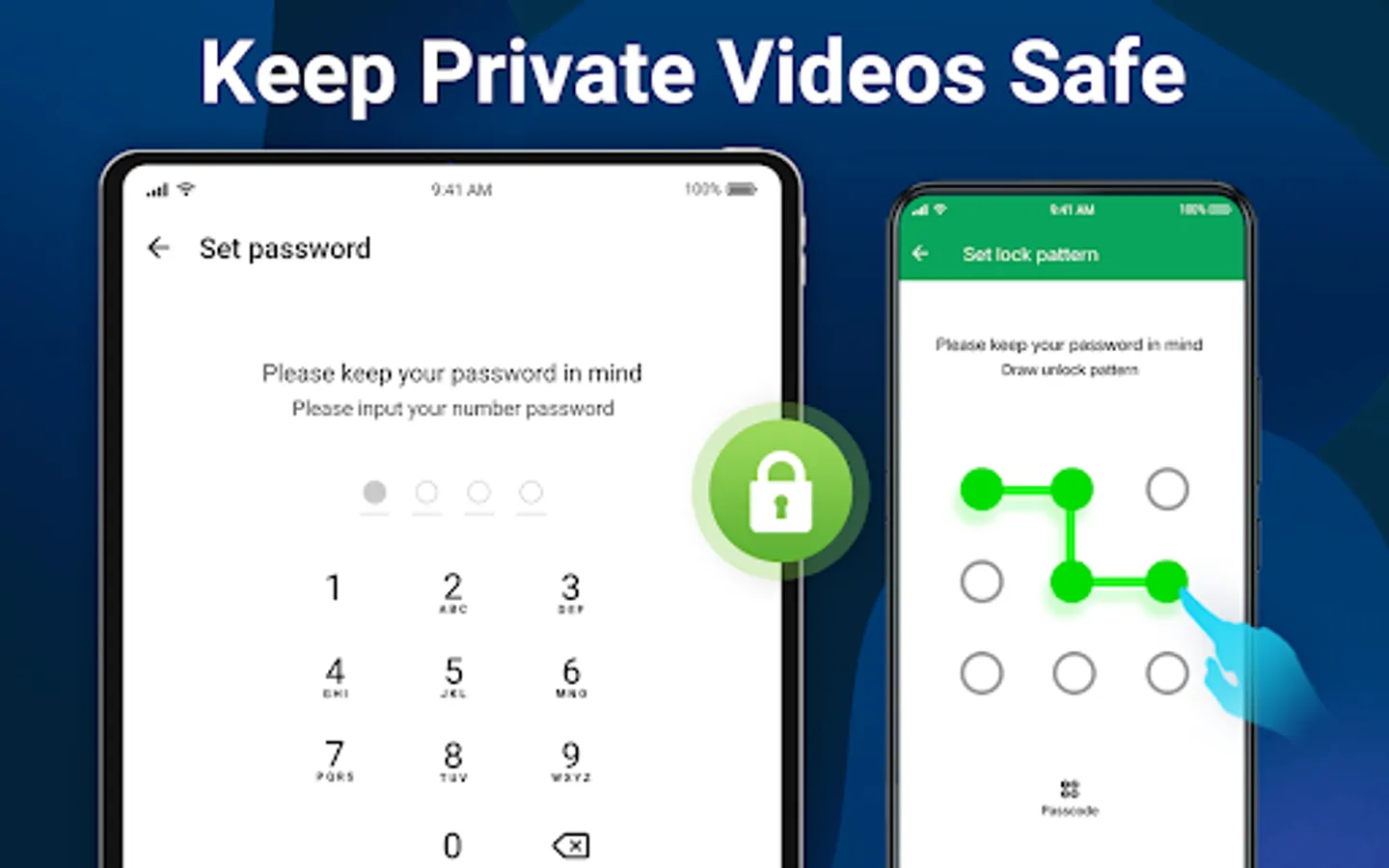 Video Player All Format supports hiding your personal videos or movies in the private folder safely. With HD Video Player, you can set a password to protect your private videos from being seen by other people.