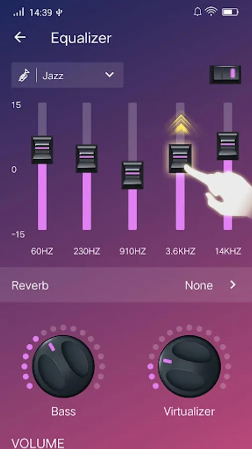 - 5-band equalizer with powerful bass booster, volume booster, virtualizer & 3D reverb settings.