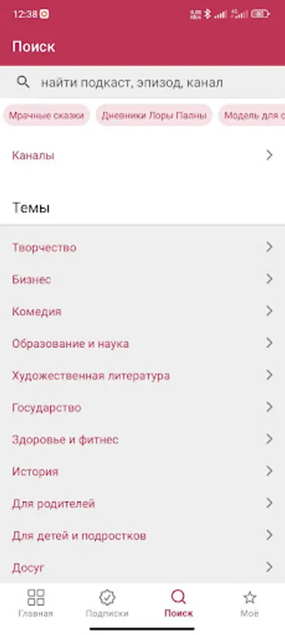 Search for a podcast, audiobook, or audio show by keyword, author, or channel, and discover new podcasts on a variety of topics.