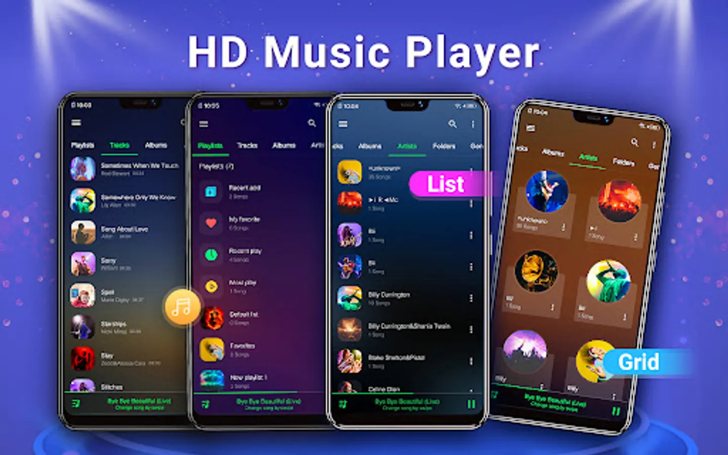 Music Player - Audio Player supports almost formats of audio files. Music player scans all music automatically and group them by title, artist, album. Easy to find the song you want. Its a Best Music Play app where you can create hit playlist, to play awesome music as per your mood using mp3 music player. Music Player also supports you quick search lyrics online from the internet.