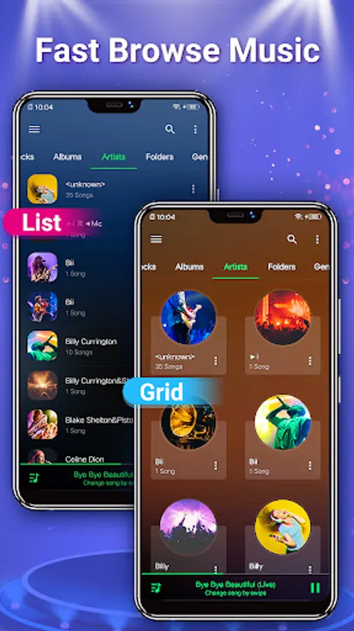• Browse and play your music by Albums, Artists, Playlists, Genres, Folders etc