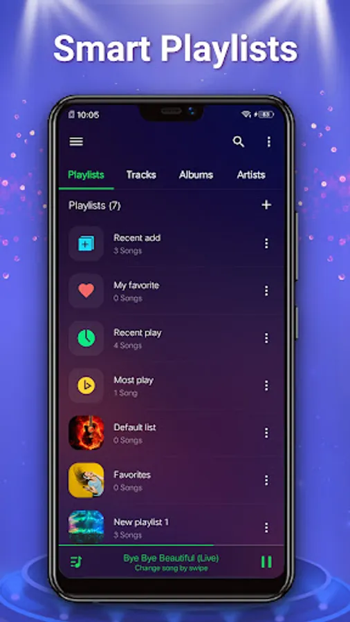 • Smart Auto Playlists - Favorite list/Recently played/History Fully playlist support