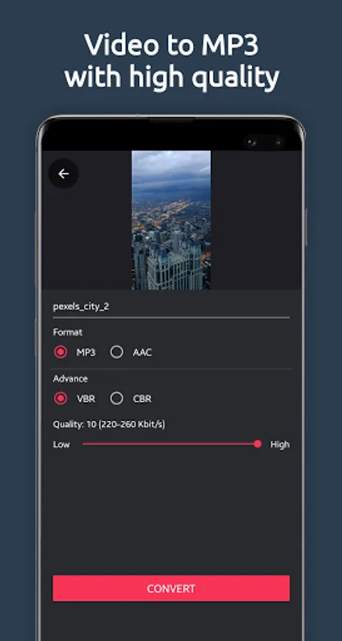 Convert mp4 to mp3, video to audio, and save as music. you can extract music from your favorite videos. It is the easiest-to-use mp3 converter and video converter.