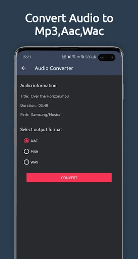 ● Audio converter, support the mutual conversion between mp3, aac, ogg, m4a, wav music formats.