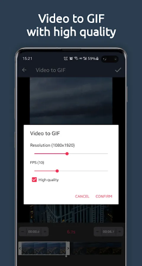 Trim a part of the video or convert the complete video to GIF animation. You can save as a high-quality GIF, and you can control the FPS and resolution.