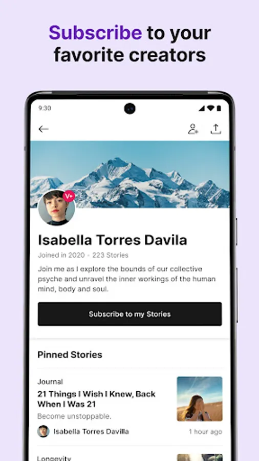 + Discover and subscribe to your favorite creators: Stay updated with their latest stories and gain insight from their unique perspectives.