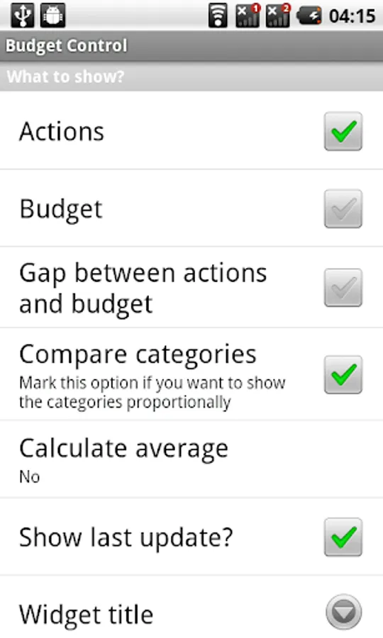Budget Control is a small free widget that lets you see your expense, income and budget managed by the HandWallet app on the home screen of the phone.