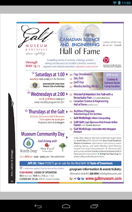 Active Lethbridge is the app for the City of Lethbridge’s Recreation and Culture Guide. This monthly publication, in full colour and with the ability to turn pages and click on links, will update automatically each month. This is your go-to source for all things recreation and culture in Lethbridge and will allow the user to find out what's going on, and become active and engaged in our community with the things that interest them. Users will also find information on parks, historical notes and other short articles of interest.