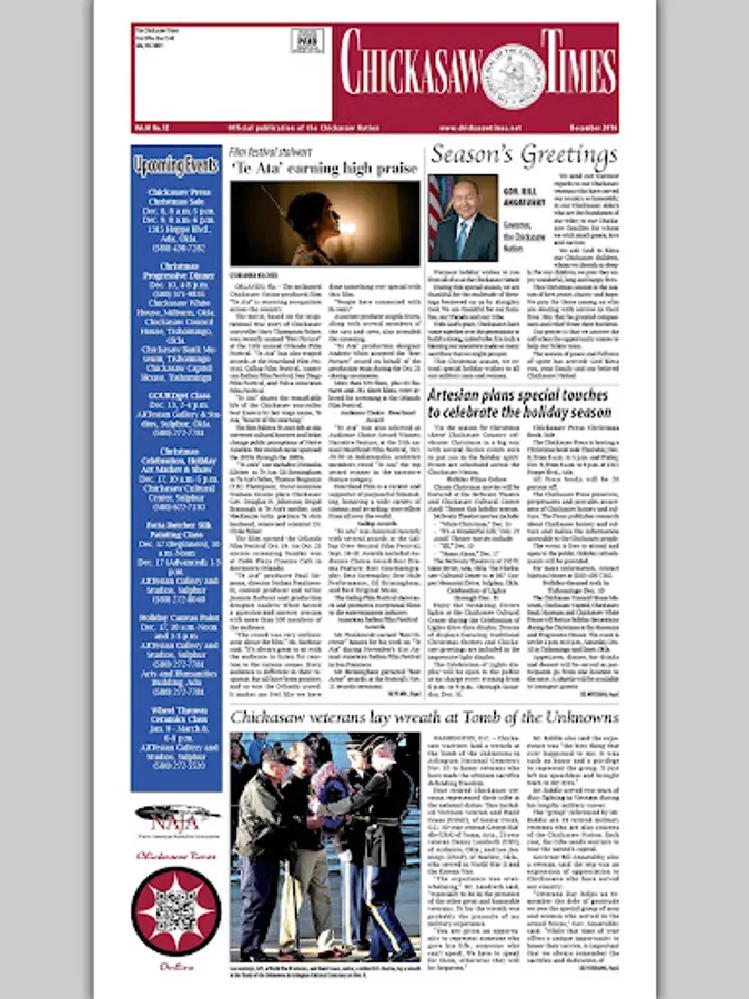 The Chickasaw Times is the official newspaper of the Chickasaw Nation. The Chickasaw Times App provides fast and easy access to news and events of the Chickasaw Nation while you are on the move. Stay in touch and informed about Chickasaw citizens, services and happenings with the Chickasaw Times App. Featuring sliding pages and an easy-to-navigate toolbar, the Chickasaw Times App includes an email option and a share feature for your convenience.