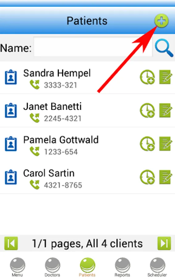 Add new Patient/Doctor: you can tap the "+" in the upper-right corner of the screen (please find attached screenshots - the red arrows show where..).