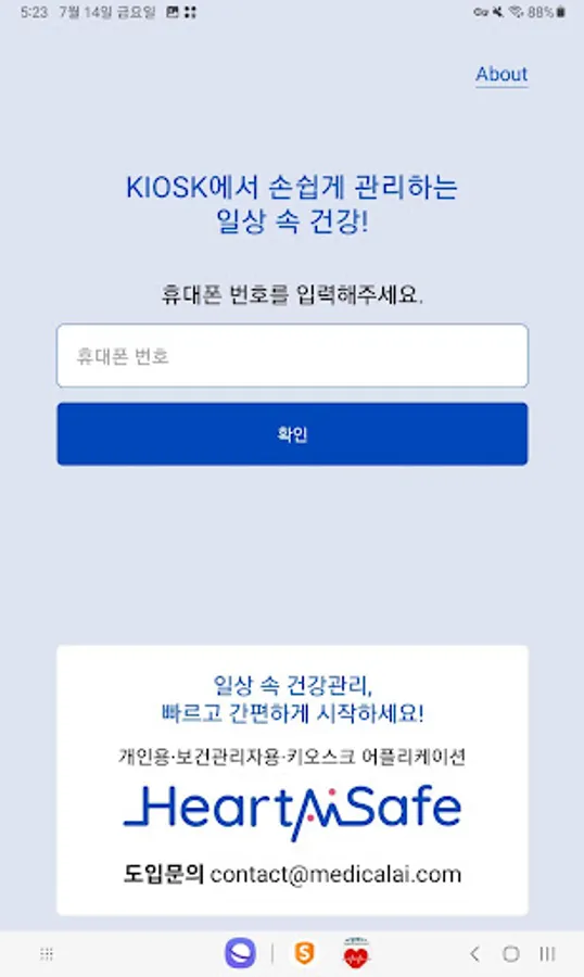 HeartSafe's kiosk app for corporate health managers and institutional administrators.