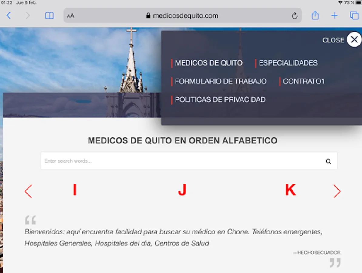 Doctors of Quito is willing to make itself available to all the people who urgently need to find their doctor. For that there is the same platform that collects the direct telephones of each doctor to attend to their patients. Here we present doctorsdequito.com to get where our family doctor is