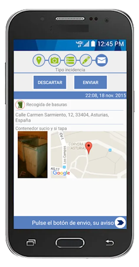 The City of Corvera de Asturias offers citizenship l @ s @ s this free service through which they can communicate real-time incident relating to cleaning and waste collection in the municipality.