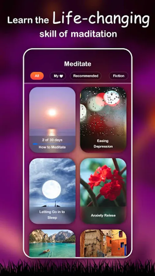 Discover the simple and extensive sound collection. Let the many incorporated guided practices like rhythms, animations, visualization, hypnosis, chanting, and more to quiet your mind.