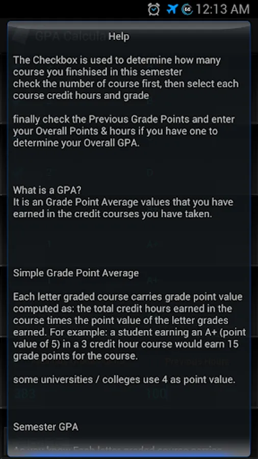 GPA Calculator will help you calculate your Grade Points Average in college.
