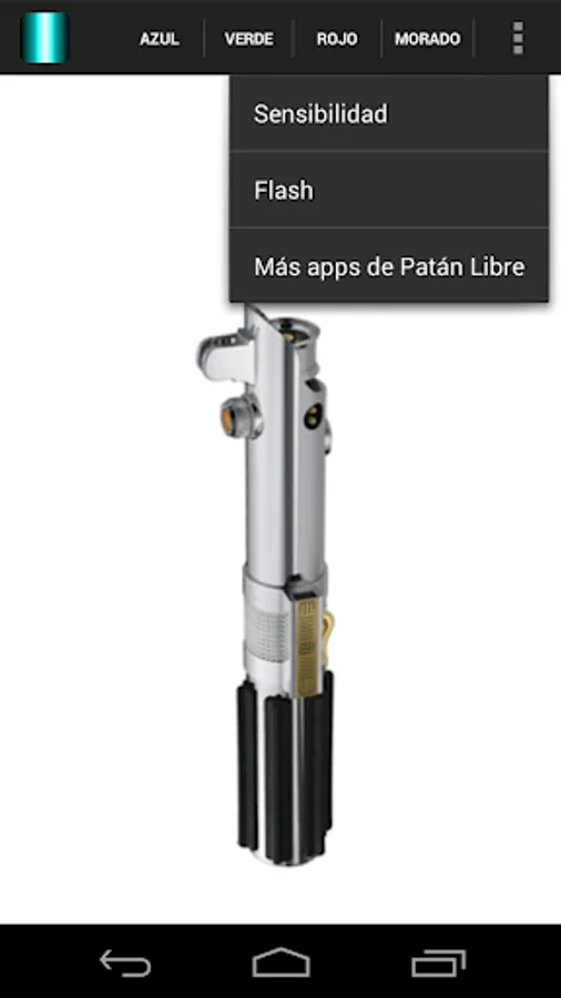 If your device has a camera flash on it you can activate the fashing option, if you do so, the bright of the screen will be reduced and the light will flash every time the light saber pretends to hit something.