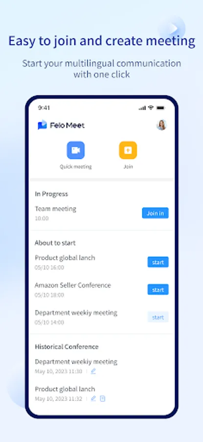 With the Felo Meet mobile app, you can hold or join meetings from any Android device, enjoy clear audio and video communication, collaborate with file sharing and editing, and transfer presentation control to other participants.