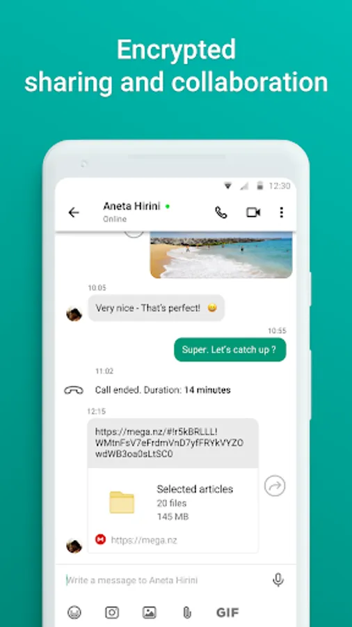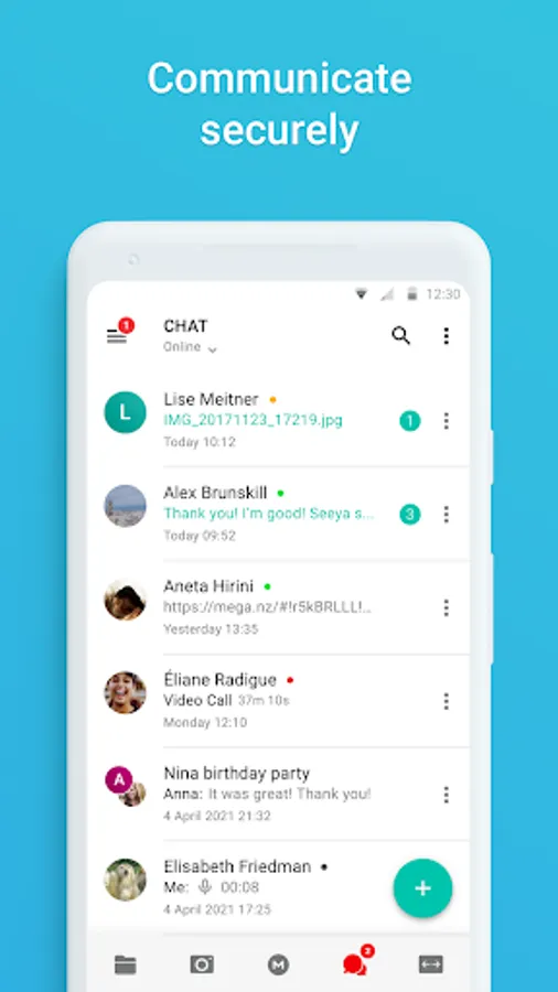 Use the included MEGA Secure Chat for end-to-end-encrypted communications, including video and audio calls, with total privacy. Chat history synchronises automatically across multiple devices and you can also easily add files to, and from the MEGA Cloud drive.