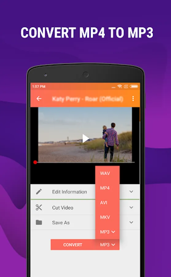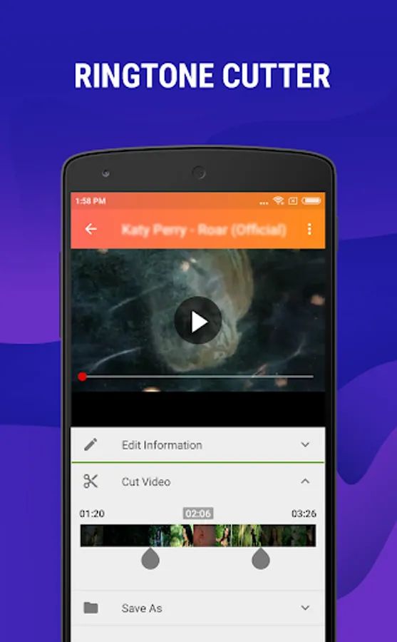 VideoMaster Tools is a convenient and fast converter video to audio. It allows to convert video files of the mp4 and m4a formats to mp3. Add a song from the video clip you liked to your playlists on the smartphone. The built-in mp3 tag editor will help you organize your music collection right on your phone. Moreover, thanks to the cutting function of the app you can create your own ringtones!