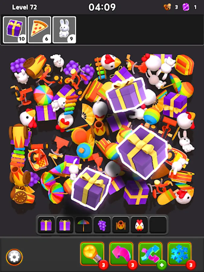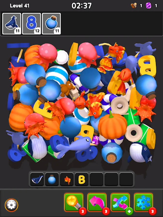 Mega Match - Tile Master 3D is a challenging and having enjoyable levels matching game. Fun is calling for you! Get ready to embark on an exciting journey filled with different objects, challenging levels, and mind-bending puzzles. Your mission is to find hidden 3D objects of various shapes all within the given time limit. The clock is ticking, and the pressure is on! Can you stay calm, focused, and find the objects in time?
