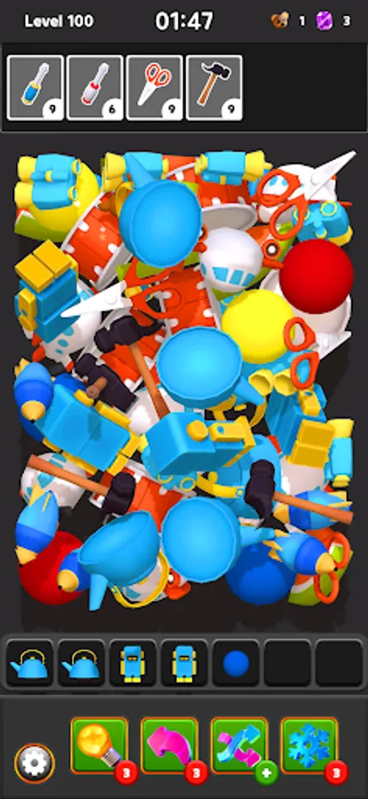 -If you fill the seven slots at the bottom of the board with objects you fail the level.