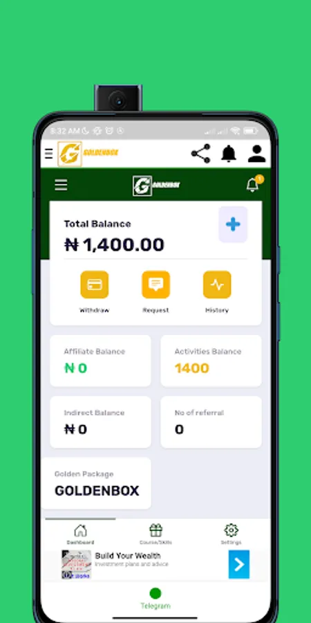 4. Referral Program: GoldenBox has a referral program where you can invite others to join GoldenBox. For every user you refer, you receive N1,600. This referral bonus is a substantial amount that can significantly boost your earnings.