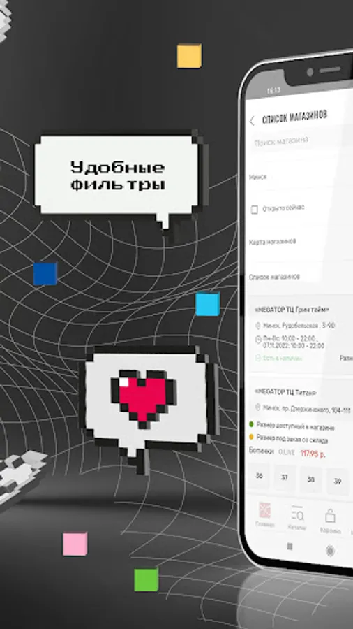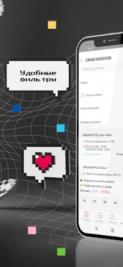 Ofitsial'noye mobil'noye prilozheniye MEGATOP pozvolit bystro i udobno sovershat' pokupki dlya vsey sem'i. V MEGATOP naydetsya obuv' dlya kliyentov s samymi raznymi byudzhetami. Bol'shoy assortiment obuvi i aksessuarov u vas v telefone! Za schitannyye minuty vy smozhete vybrat' i kupit': obuv', sumki, ryukzaki, remni, koshel'ki i drugiye tovary dlya zhenshchin, muzhchin i detey. S pomoshch'yu prilozheniya mozhno: Zabronirovat' i zabrat' tovar boleye chem v 70 magazinakh seti po vsey Belarusi. Sledit' za poslednimi novinkami, aktsiyami i vygodnymi predlozheniyami. Dobavlyat' ponravivshiyesya tovary v izbrannoye i sostavlyat' spiski zhelaniy. Ispol'zovat' udobnyye fil'try dlya poiska po tsvetu, razmeru, materialu i stoimosti. Sovershat' pokupki v lyuboye vremya sutok. Poluchit' kvalifitsirovannuyu konsul'tatsiyu ot spetsialistov kontakt-tsentra. Nayti blizhayshiye magaziny v vashem gorode i uznat' o nalichii tovara v nikh V magazine deystvuyet gibkaya sistema skidok. My regulyarno informiruyem svoikh kliyentov o postuplenii novykh tovarov i aktsiyakh, chtoby ne propustit' ikh. Ideal'nym podarkom dlya vashikh blizkikh mozhet stat' podarochnaya karta MEGATOP. Darite druz'yam i blizkim sertifikat na pokupku tovarov v MEGATOP nominalom ot 10 rubley. Kak sdelat' zakaz: V kataloge vyberete tovar i dobav'te yego v korzinu Vyberete nuzhnyy razmer V korzine vvedite gorod, v kotorom khotite zabrat' zakaz. Zatem vyberite blizhayshiy magazin , nazhmite knopku "Vybrat' magazin". Iz otkryvshegosya spiska ili na karte vyberite magazin, v kotorom khotite zabrat' zakaz. Posle vybora magazina poyavitsya informatsiya o tom, kogda i v kakoy srok mozhno zabrat' zakaz. Yesli vas ne ustraivayet predlozhennyy variant, nazhmite knopku "Vybrat' drugoy magazin". Vyberite sposob oplaty. Yesli vy raneye registrirovalis' v lichnom kabinete, nazhmite knopku "Voyti". Forma s kontaktnymi dannymi avtomaticheski budet zapolnena. Pri neobkhodimosti vvedite promokod, chtoby poluchit' skidku, i nazhmite knopku "Primenit'". Prover'te pravil'nost' vvedonnykh dannykh vo vsekh razdelakh i nazhmite knopku "Oformit' zakaz". Brend MEGATOP - eto obuv' dlya vsey sem'i po privlekatel'nym tsenam. Strategiya kompanii osnovana na izuchenii potrebnostey i predpochteniy svoikh kliyentov. Takoy podkhod dayet otlichnyye rezul'taty: MEGATOP stal uznavayemym brendom, kotoryy pol'zuyetsya doveriyem belorusov. Skachayte prilozheniye MEGATOP i sdelayte svoy shoping maksimal'no komfortnym i priyatnym! Ustanavlivayte prilozheniye i poluchite dostupu eksklyuzivnym skidkam i promokodam !