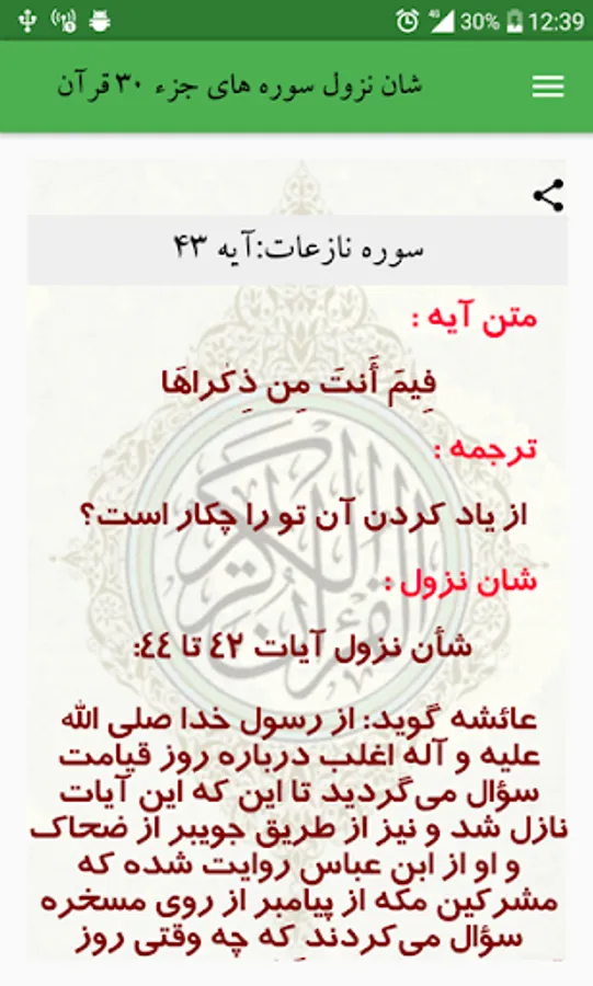 Perhaps the question is whether, for example, the verse has been revealed from the Qur'an or, in other words, what is behind it. As you know, many Quranic verses have been revealed for a certain reason. For which reason, they are called descent. This app has tried to introduce them to you. All items are provided with the source code, so there is no doubt about it.