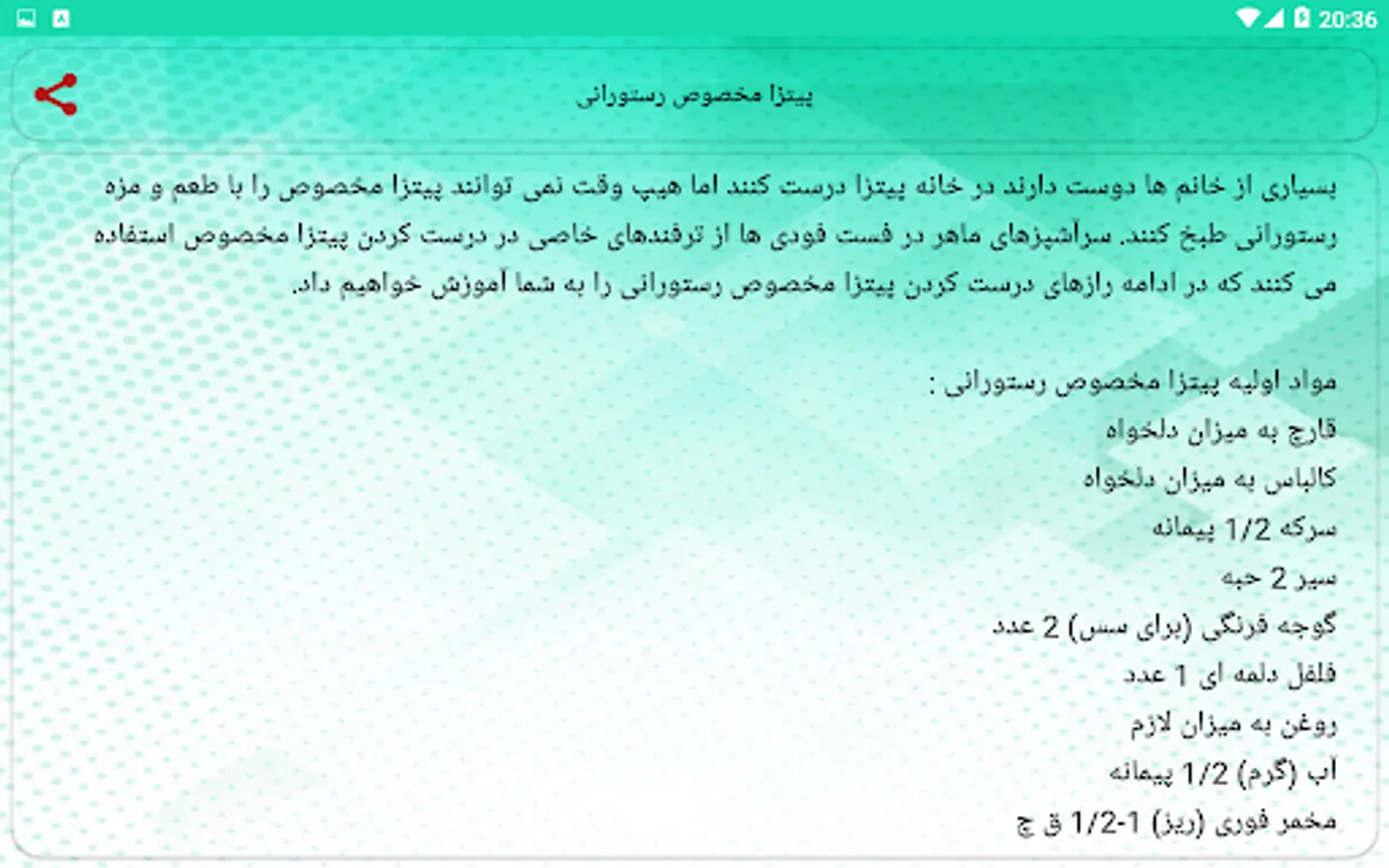 In this cooking training software, we have provided you with different methods of preparing different types of pizza, and you can easily prepare your homemade pizza in the fastest possible time by following the cooking instructions that we have taught you. Enjoy it with your family and friends.