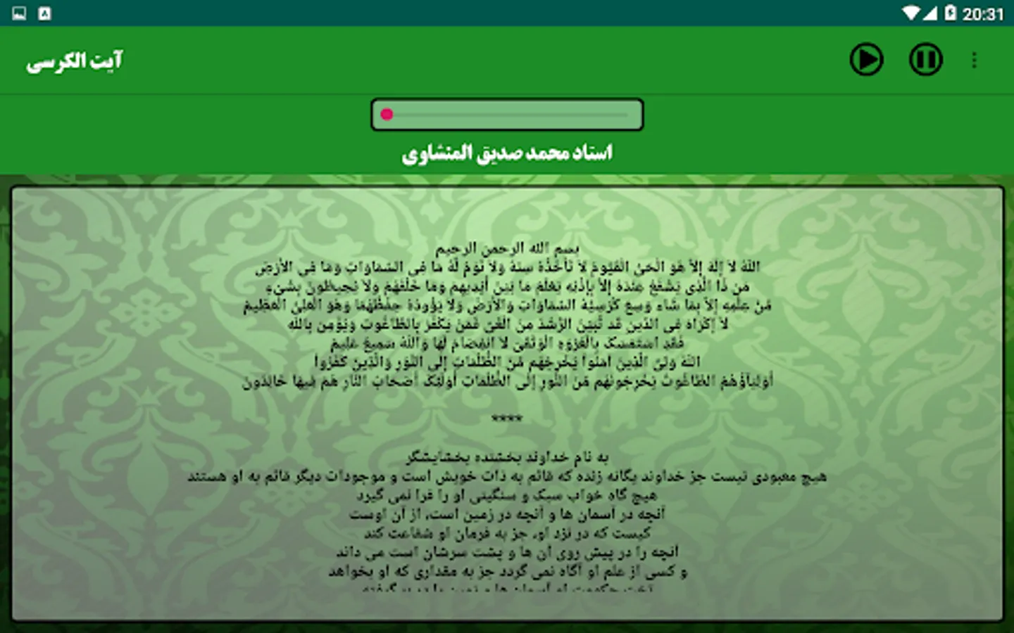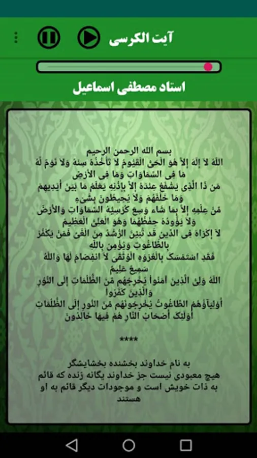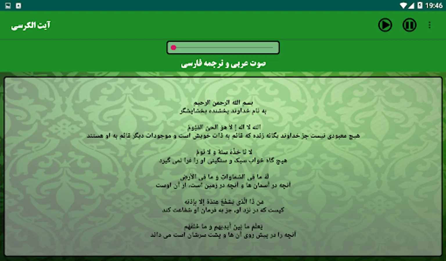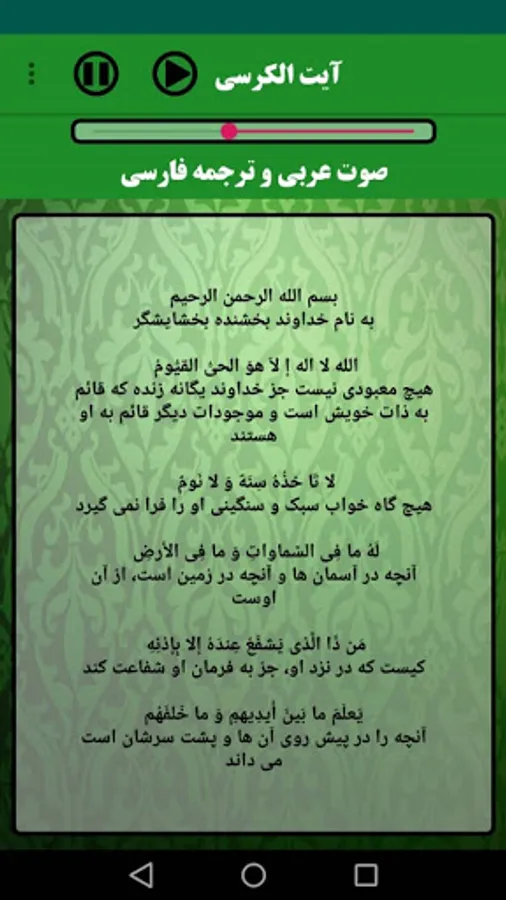 In addition to the possibility of playing the audio of Ayatollah Al-Kursi in Persian and Arabic, you can also read the text of this noble verse along with its Persian translation.