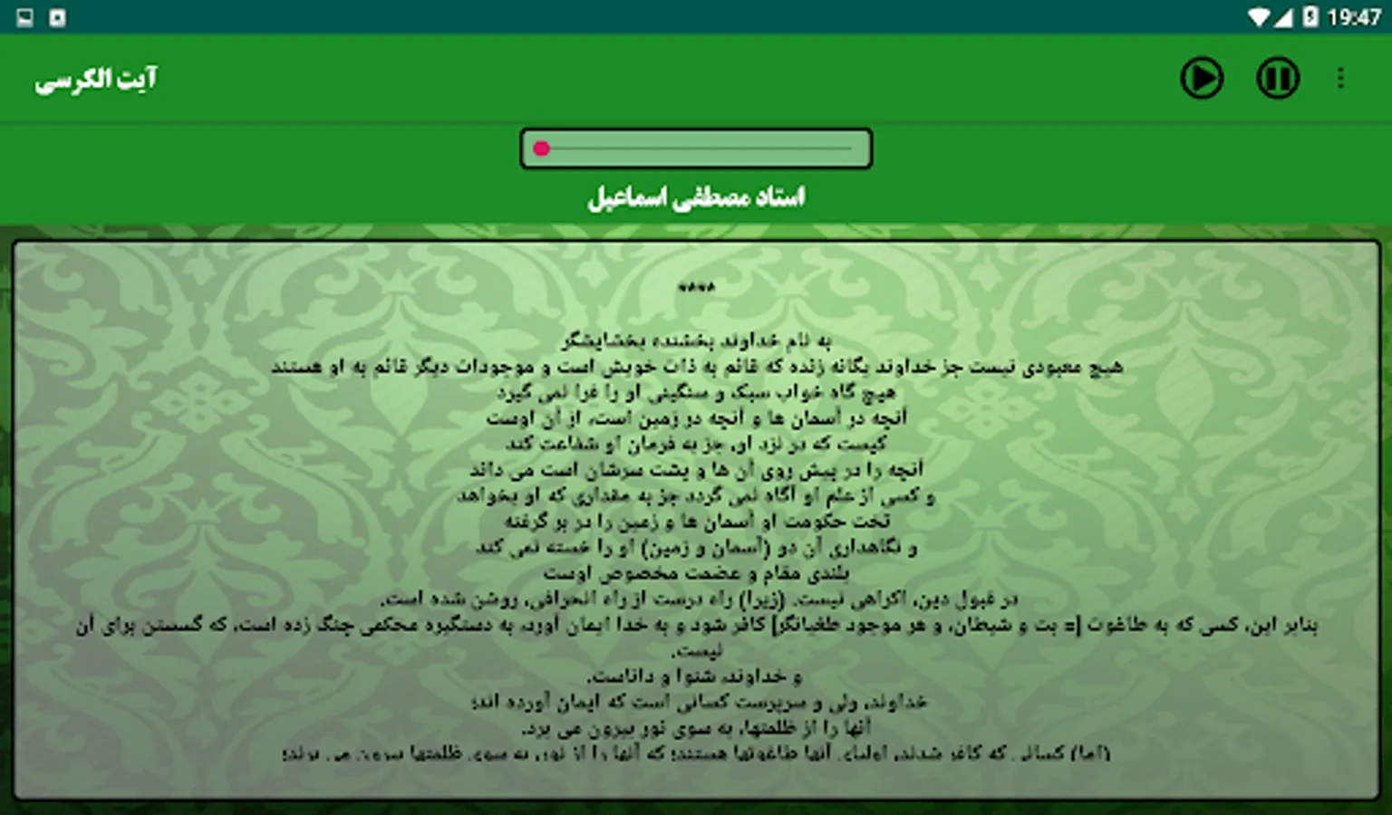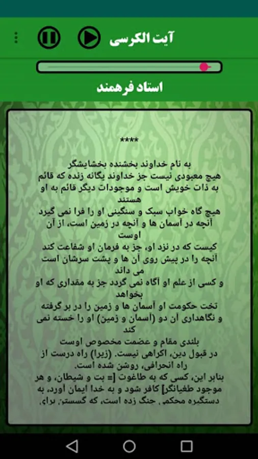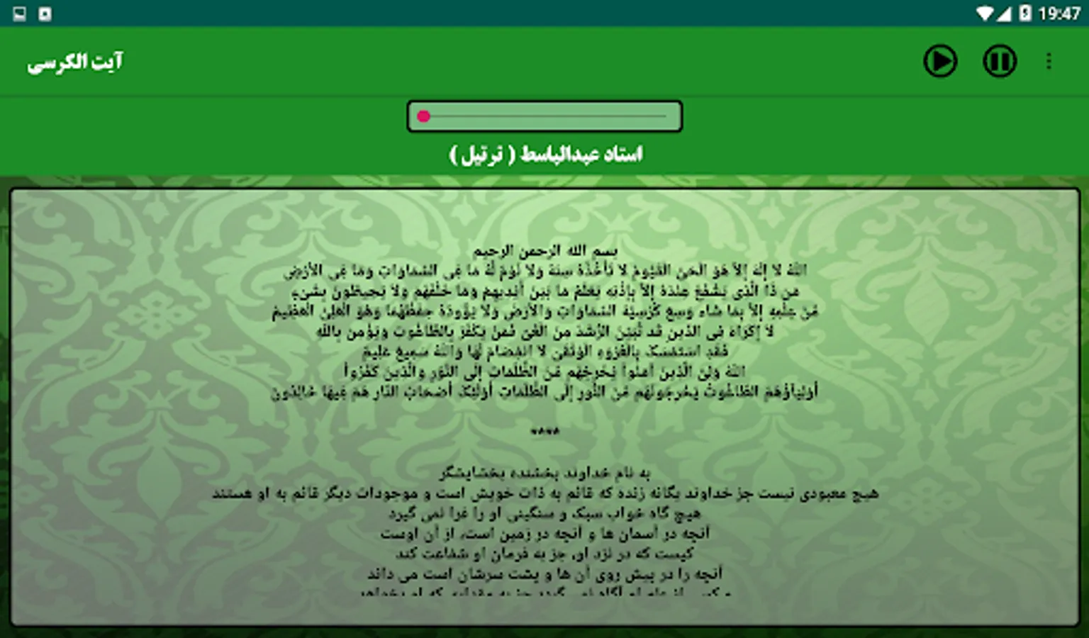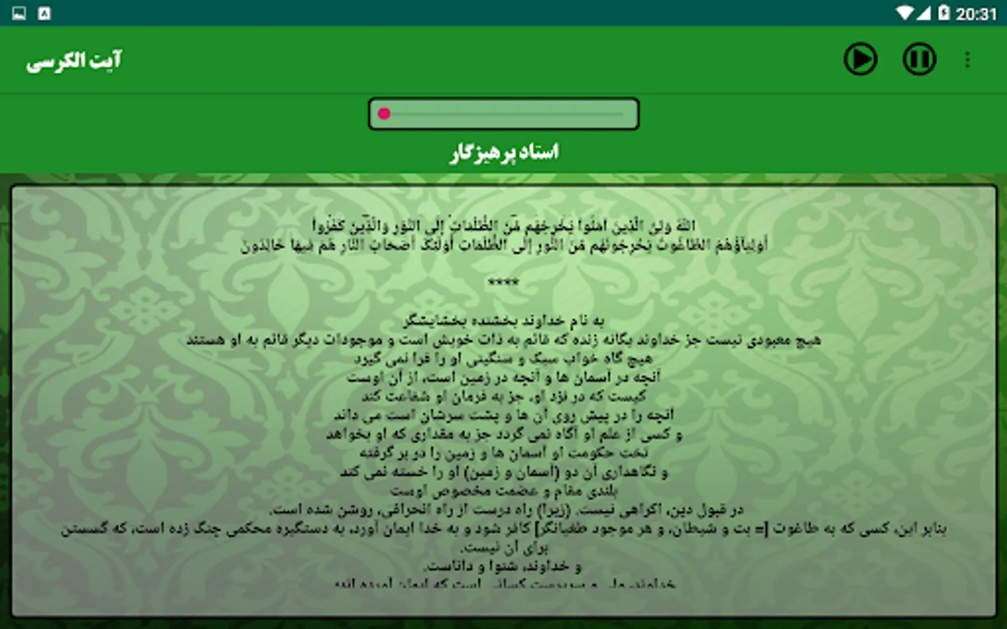In addition to the possibility of playing the audio of Ayatollah Al-Kursi in Persian and Arabic, you can also read the text of this noble verse along with its Persian translation.