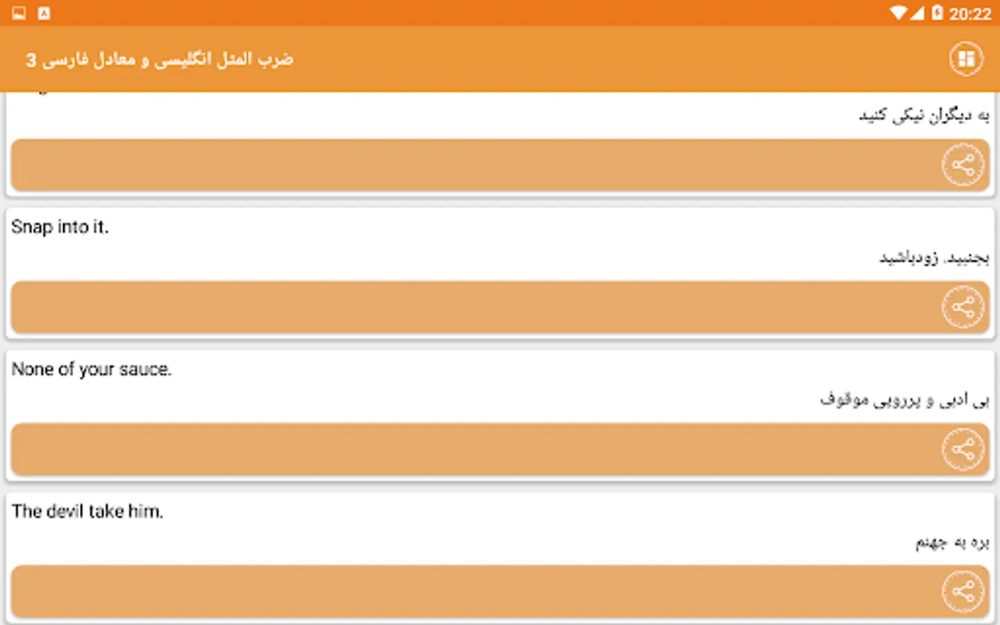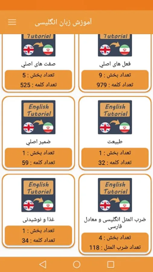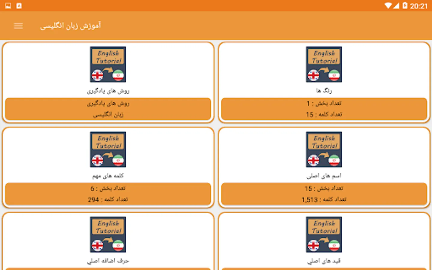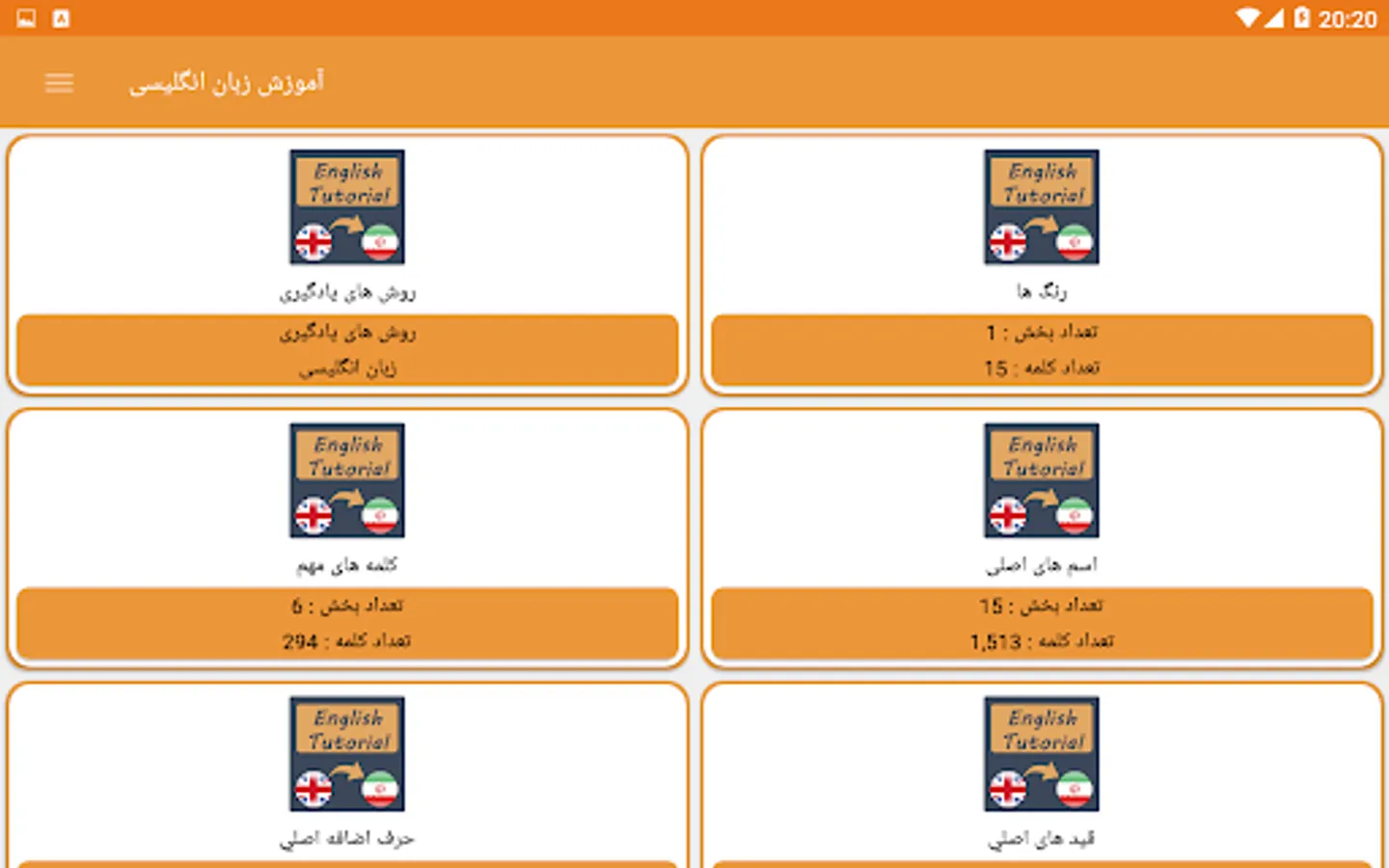 In this application, we focus on learning English words for Persian language, as well as English sentences (the most widely used English sentences) and English proverbs with Persian translation. Free English conversation training has been one of our goals for making this software.